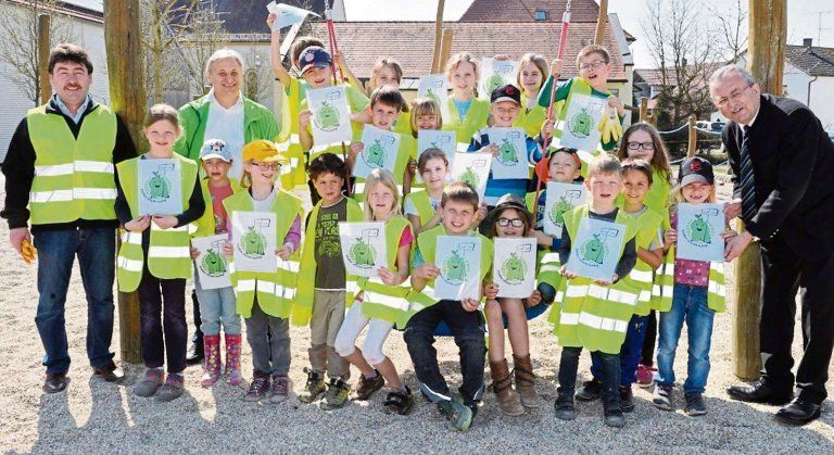 Bild unten: Wie Trophäen zeigen die Salchinger Kinder Landrat Josef Laumer ihre Teilnehmerurkunden, die sie von Bürgermeister Alfons Neumeier (links) erhalten haben. (Fotos: jb)