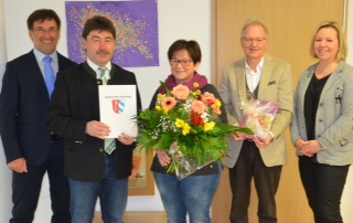 Salching.(jb) Fast ein ganzes Berufsleben für die Schwächsten der Gesellschaft, die Kinder, da zu sein, ihnen Aufmerksamkeit und Zuneigung zukommen zu lassen, ist für Christina Gedrat, zur Hauptaufgabe geworden. Am Freitagvormittag wurde sie an ihrem Arbeitsplatz in der Kindertagesstätte (Kita) Sankt Nikolaus in Oberpiebing, für 25 Jahre Öffentlicher Dienst, davon 23 Jahre in Salching, von der Gemeinde geehrt. Bürgermeister Alfons Neumeier würdigte im Beisein von Geschäftsstellenleiter Günter Stephan und seinem Vertreter Armin Hrubey, sowie Kita-Leiterin Andrea Legerer den Dienst der langjährigen Erzieherin. Nach Stationen in Leiblfing und Pilsting, kam Gedrat im April 1994 zum Kindergarten in Oberpiebing, wo sie Jahre später, nach entsprechender Qualifizierung, die neue Krippe mit aufgebaut habe. Heute sei sie die Leiterin der Raupengruppe. Die Eltern wissen ihre Kinder bei Christina Gedrat gut aufgehoben und die Kinder mögen sie. Die Kolleginnen schätzen besonders ihre künstlerische Kreativität. Als Dank und Anerkennung gab es von Seiten der Gemeinde eine Urkunde und ein Buchgeschenk, sowie vom Bürgermeister einen Blumenstrauß.