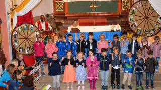 Oberpiebing/Salching. (jb) Pfarrer Dr.Raphael Mabaka hätte bestimmt seine helle Freude daran, wenn die Pfarrkirche Oberpiebing bei den Gottesdiensten immer so voll besetzt wäre wie beim Abschlussgottesdienst der Vorschulkinder des Kindergartens Sankt Nikolaus am Mittwochnachmittag. Schon der Einzug der Vorschulkinder war ungewöhnlich, denn alle 21 benutzten dabei Buggys, Dreiräder und Tretroller. Überhaupt stand das Rad im Mittelpunkt. Ein großes Rad vor dem Altar erinnerte an das Leben: Auch da dreht sich nicht immer alles rund. Pfarrer Dr.Mabaka, verglich die Kinder mit den Speichen eines Rades wo jedes seine Funktion habe und mit seinen Eigenschaften und Fähigkeiten einmalig sei. Die Leiterin des Kindergartens Andrea Legerer machte deutlich, dass jeder Mensch etwas Besonderes und gleichzeitig Teil der Gemeinschaft sei. „Wir sind immer mit anderen verbunden, so wie mit Jesus, der unsere Schritte lenkt und unser Lebensrad in die richtige Richtung führt “, sagte sie. Es folgte der Bändertanz „Schritt für Schritt, du gehst mit.“ Nachdem die Kinder in den Fürbitten um Mut und Hoffnung, Freude und guten Willen sowie Liebe und Vertrauen gebeten hatten, sangen alle gemeinsam das „Vaterunser.“ Nach dem Segen ging mit dem Lied „Gottes guter Segen sei mit euch“ die Abschlussfeier zu Ende.