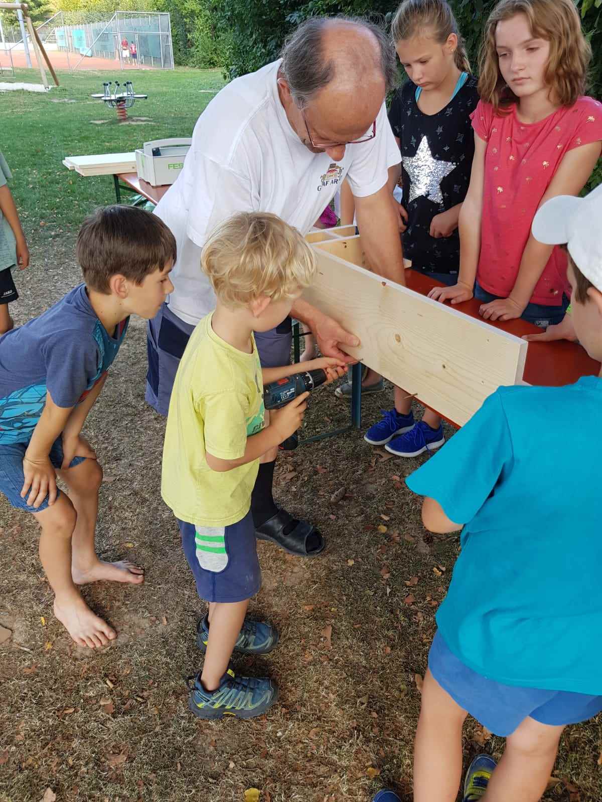 Den Gartenkäuzen liegen nicht nur Vögel am Herzen, sondern natürlich auch Insekten zur Förderung der Artenvielfalt. Bei zwei Veranstaltungen wurden Insektenhotels gebaut und mit verschiedensten Materialien, wie Lehm und Tannenzapfen gefüllt. Nach den Insekten nahm man sich der nächsten Tierart an, deren Lebensräume immer mehr eingeschränkt werden, nämlich der Fledermaus. Unter Anleitung wurden von der Kinder- und Jugendgruppe 25 Fledermauskästen gebaut. Einige davon wurden ebenfalls an den Bäumen entlang der Streuobstwiese angebracht.