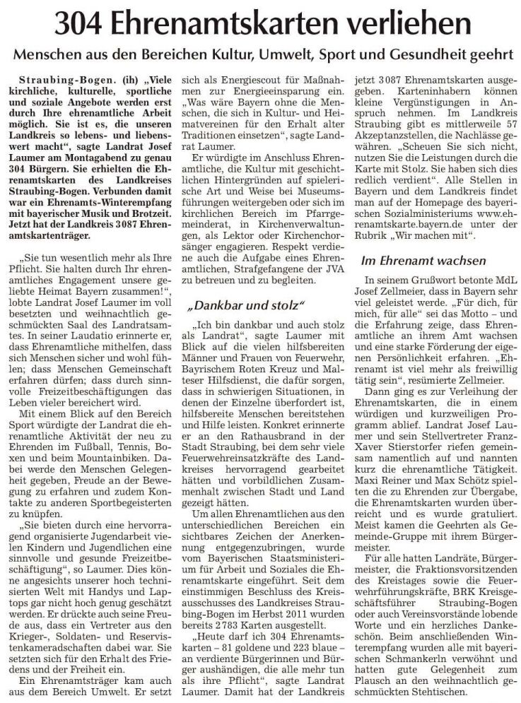 Ehrenamtkarte an Johann LermerVeröffentlicht: 14. Dezember 2016 | Zugriffe: 1821 Verleihung der Ehrenamtkarte des Freistaates Bayern am Montag den 12.12.2016 im Landratsamt Straubing-Bogen an den Salchinger Gemeindebürger Johann Sebastian Lermer zusammen mit dem Ersten Bürgermeister Alfons Neumeier. < ZurückWeiter >