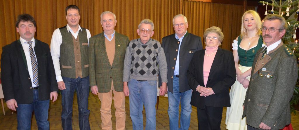 Foto: Die für langjährige Mitgliedschaft ausgezeichneten Schützen mit (von rechts) Schützenmeister Konrad Hoffmann und Stellvertreterin Manuela Schmidt, sowie (links) Bürgermeister Alfons Neumeier.