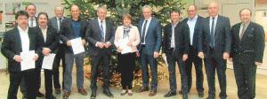 Bei der Übergabe (von links): die Bürgermeister Alfons Neumeier, Dieter Schröfl, Johann Anderl, Anton Drexler, 2. Bürgermeister Martin Aumer, Landrat Josef Laumer, Bürgermeisterin Barbara Unger, MdB Alois Rainer, Bürgermeister Manfred Reiner, Wirtschaftsreferent Erich Brunner und die Bürgermeister Karl Wellenhofer und Christian Hirtreiter. (Foto: jg)